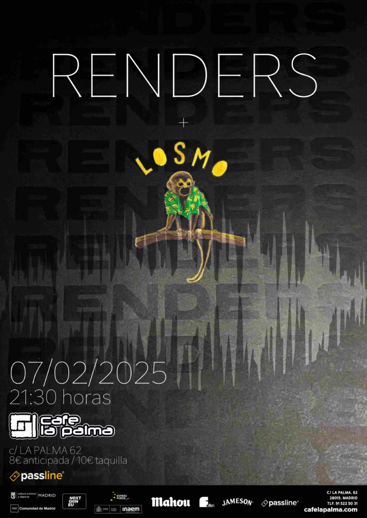 Esta vez vendrán acompañados por LOSMO, banda de virtuosos músicos que junto a Renders ya han realizado dos sold outs en Madrid durante 2023 y 2024.