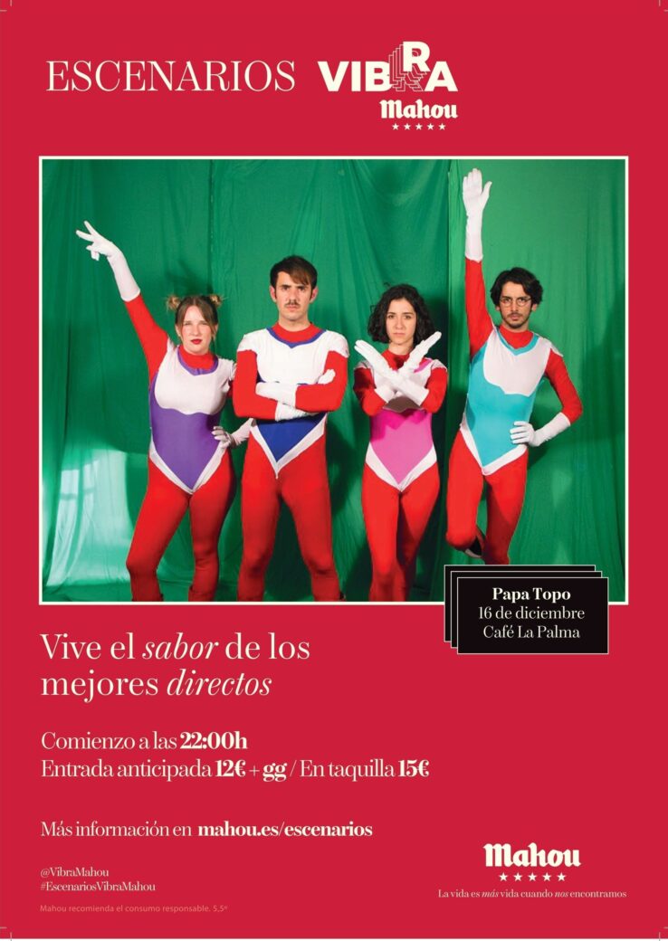 PAPA TOPO han mostrado con creces su versatilidad, yendo del sonido sixties al sabadabadá, del garage al punk y al disco, del pop más dulce a piezas clásicas o incluso boleros. Todos estos estilos cohesionados son los que definen a PAPA TOPO, donde se nota que detrás ya hay algo más que un compositor: hay una banda firme y sólida.