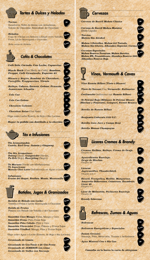 ¡Disfruta de nuestras más de cien referencias entre cocktails, cervezas, marcas premium, smoothies o cafés especiales desde media tarde hasta que salga el sol!