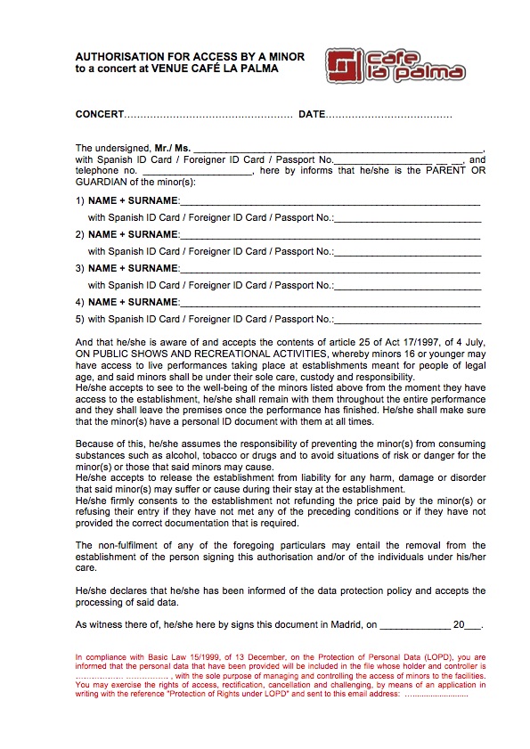 Download guardians form (you must add a copy of your id card and the minor’s one, and deliver it at venue’s entrance):