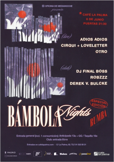BÁMBOLA NIGHTS es el evento con el que sale a la luz Oficina de Medianoche, un proyecto en colectivo que pretende desordenar felizmente los circuitos de los eventos musicales y dar apoyo y espacio a artistas musicales emergentes.