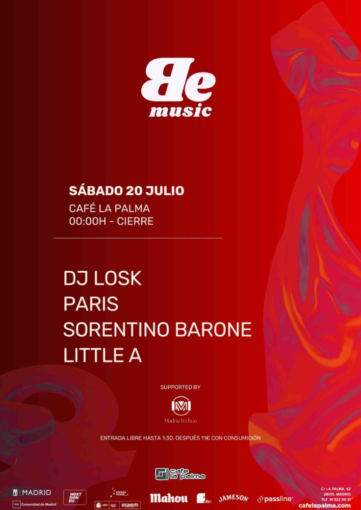 Tras estrenarse en CAFE LA PALMA el pasado mes de junio, los chicos de Be Music regresan a esta casa en una colaboración especial con Madriz Techno y nos traen como invitado a Sorentino Barone, Dj, productor y promotor madrileño que lleva más de una década agitando la escena clubbing dentro y fuera de la capital.