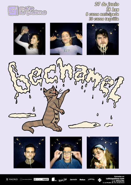 Bechamel es una banda formada en Madrid por dos amigos: Alberto y Juan Andrés, que buscaban crear un ambiente buenrollero y desenfadado entremezclando un pop acaramelado con un indie más cañero. A ellos se les unieron Bego, Irene, Iván y Cristina, y se dio forma definitiva al proyecto.