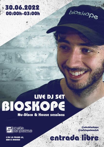 Bioskope vuelve a CAFE LA PALMA celebrando el lanzamiento de su nuevo EP de electrónica disco “Shut Up, Please, I Wanna Dance (Part Two)» para llenar de nuevo la pista con la mejor música nu-disco, french house y electrónica bailable de artistas como Todd Terje, Breakbot o Daft Punk. Los Dj sets de Bioskope consisten en una mezcla orgánica que propone cambios y FX nuevos en cada sesión.