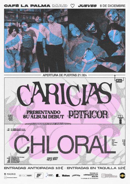 Concierto de presentación de «Petricor» (Capsula Records, 2022), primer disco de Caricias, una formación de Barcelona que factura un pop ruidoso con canciones enérgicas envueltas en ambientes envolventes y mágicos. Les acompañarán los madrileños Chloral, una formación que toma el shoegaze como punto de partida, pero aderezado con muchas otras influencias, siempre con la intensidad y la emoción como nexo común.