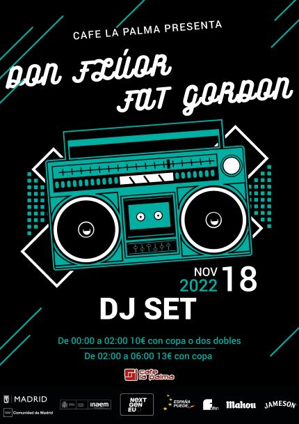 El combo de agitadores nocturnos formado por los Djs y productores DON FLUOR y FAT GORDON vuelven a asaltar la cabina de CAFE LA PALMA para ofrecer a los paladares más exquisitos una sesión electrónica de altos vuelos.