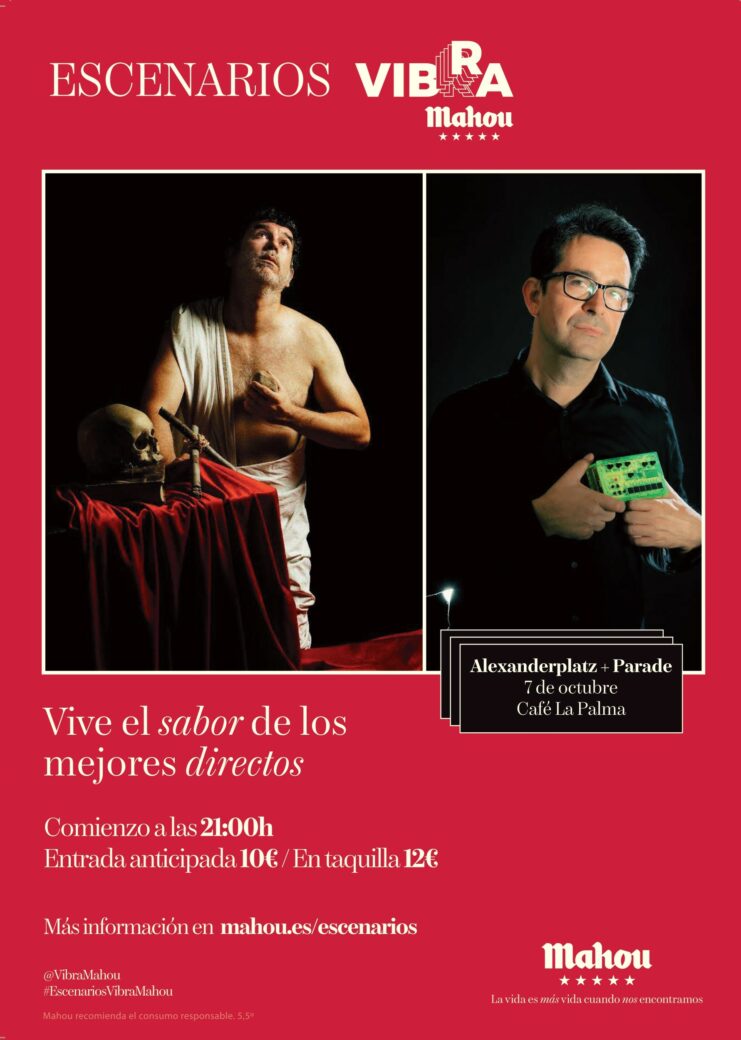ALEXANDERPLATZ es el proyecto iniciado en 2016 por el murciano Alejandro Martínez, el que fuera guitarrista, compositor y productor de los desaparecidos Klaus&Kinski y que continúa la presencia de sonidos recurrentes de estilos como el pop de los ’80, el synth y el dream pop, la eléctrónica de vieja escuela, el shoegaze, el rock y el country, el folk, la canción melódica e incluso de diferentes estilos de sabor iberoamericano. Este será el concierto de presentación en Madrid de su tercer álbum titulado «Noches blancas, mañanas negras”, que siguiendo la línea marcada por los dos anteriores trabajos («Muera usted mañana» y «Parques nacionales españoles») profundiza en la combinación de estilos y arreglos de guitarras y sintes, que otorgan a sus composiciones un sello personal e intransferible. Canciones que, desde los tiempos de Klaus&Kinski, se caracterizan por su forma poliédrica de interpretar la música pop.