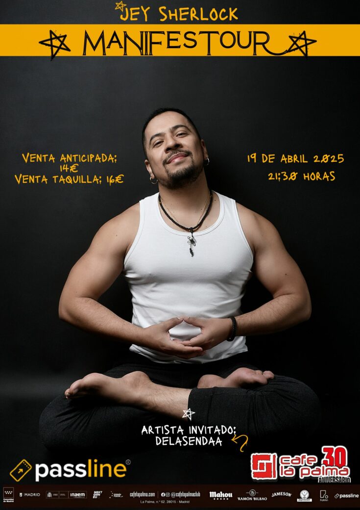 El “ManifesTour” arranca en Madrid, España, con un concierto único en CAFE LA PALMA, donde Jey presentará en vivo las 13 canciones de su tercer álbum de estudio, “Bitácora Astral”. Su canción principal, “Feliz”, supera el millón de reproducciones en Spotify. Con un estilo único que combina canto, baile y una conexión auténtica con su público, Jey promete una presentación inolvidable que llevará a los asistentes a un viaje emocional y espiritual lleno de energía y transformación.