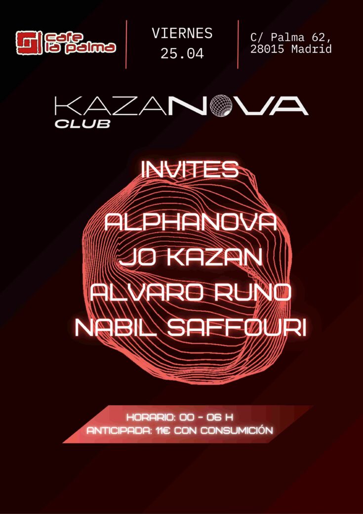 En esta ocasión en cabina, Alvaro Runo y Nabil Saffouri como guest Djs, además de los residentes habituales y hosts de Kazanova CLUB, Jo Kazan y Alphanova.