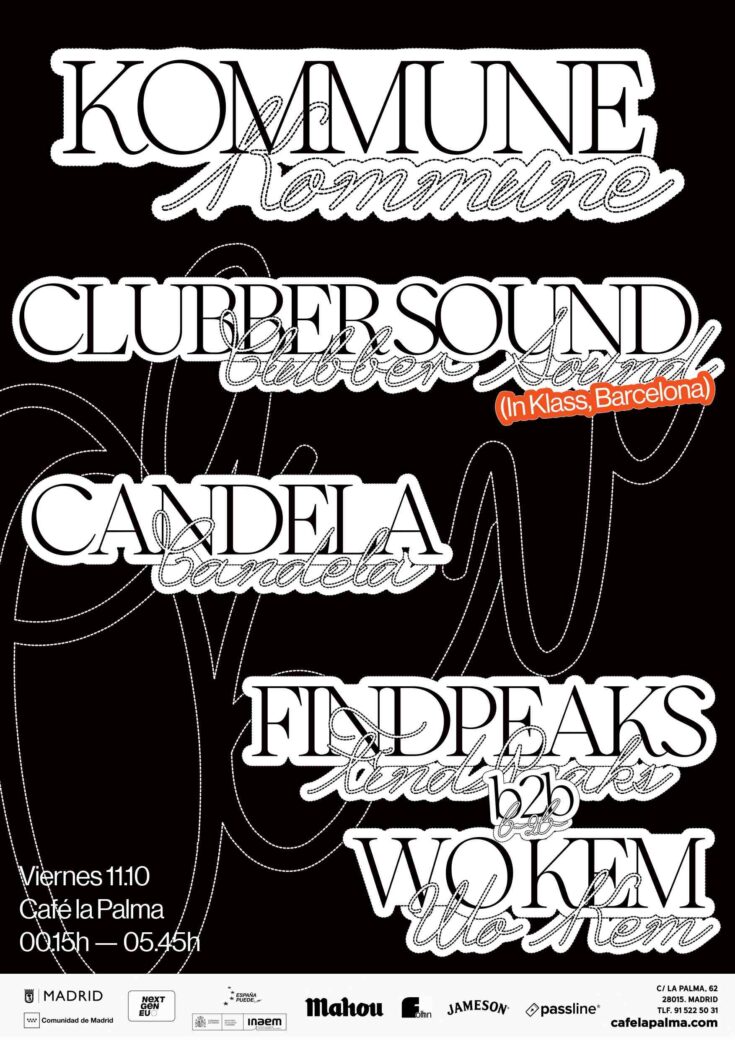Para mantener la inercia de los pasos de baile, KOMMUNE CLUB vuelve a CAFE LA PALMA con un mix ecléctico electrónico que mantendrá el ambiente cálido en este inicio de otoño. Para ello, una lineup de ensueño con los siguientes invitadxs: