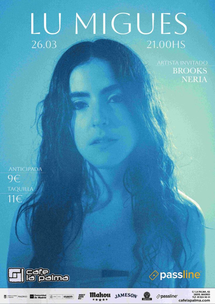 LU MIGUES, artista uruguaya de corte indie pop, presenta su disco en vivo con banda completa en CAFE LA PALMA. La cantante y compositora, originaria de Uruguay, ofrecerá una experiencia única donde presentará “Con el corazón en la mano”, su último disco, en formato de banda completa. Con un repertorio de canciones propias que capturan su estilo íntimo y moderno, la noche contará también con la participación de Brooks Neria, prometiendo una noche llena de música original y frescura.