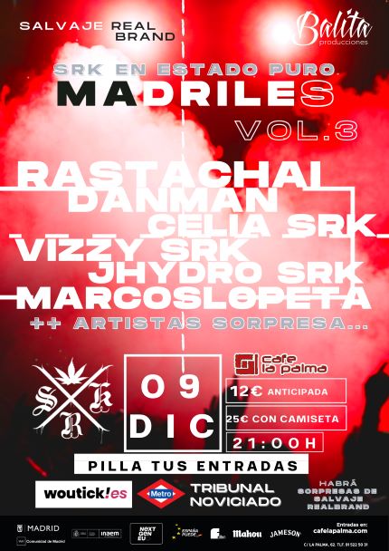 12€ + gg Anticipada | 15€ Taquilla | 25€ +gg + Camiseta Edición Limitada SRB x SRK