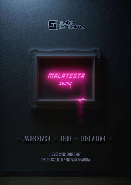 Malatesta Sound vuelve a CAFE LA PALMA club con ganas de hacernos bailar, proponiéndonos un viaje sonoro muy especial a través de la música electrónica más underground del momento orientada al los estilos deep-house, dub-house y tech-house de la mano de los artistas Javier Klash, Lebo y Luxi Villar.