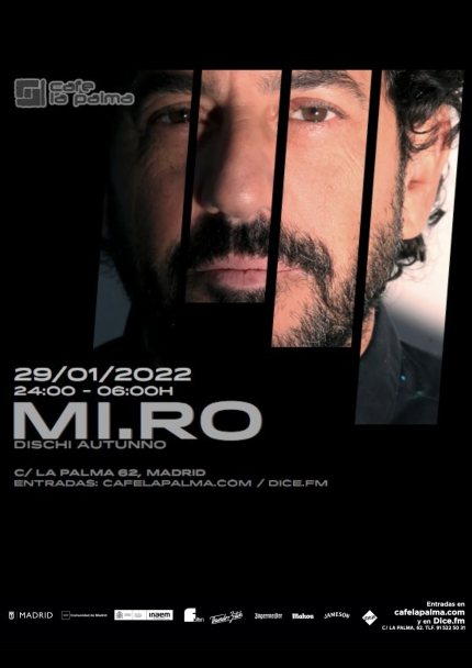 MI.RO es el proyecto paralelo del veterano DJ y productor Fernando Gullón, enfant terrible de la escena española. Durante toda su carrera ha publicado trabajos en sellos discográficos nacionales e internacionales como Rotten City, Spa In Disco, Boîte, Espacio Cielo, Nein, La Volta Ros, Critical Mondays o Paradise Children. En 2021 publicó dos EP’s junto Yula Kasp in Dischi Autunno (subsello de Correspondant) con remixes de Nadia D’Alo (Hivern Discs), Mogambo (Dischi Autunno) y Curses, además de nuevos Eps y su álbum de debut.