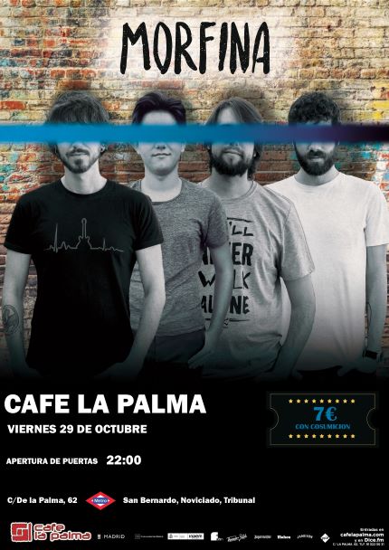 Morfina es un grupo madrileño nacido a finales de 2016 bajo la influencia de bandas como Pereza, Sidecars o Los Rodriguez. Andrés a la voz y guitarra, Mario al bajo, Cristian a la batería y Pablo a la guitarra forman un cuarteto que te hará vibrar con canciones de puro rock and roll y emocionarte con sus baladas.