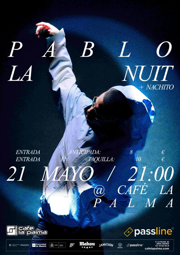 Originario de Málaga, PABLO LA NUIT es un artista versátil residente en Madrid que se distingue por su apuesta hacia un sonido R&B con toques de hip hop. Su voz carismática y sus letras cargadas de sentimientos, además de su facilidad para adaptarse a otros géneros musicales como el afrobeat o el rap, hacen de él un artista muy completo y con mucho que aportar.