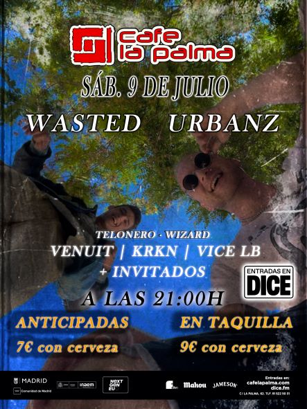 Urbanz y Wasted. Acompañados por Venuit, KrKn y Vice LB y con Wizard abriendo el show, tendremos letras y ritmos cautivadores a raudales al estilo noventero .