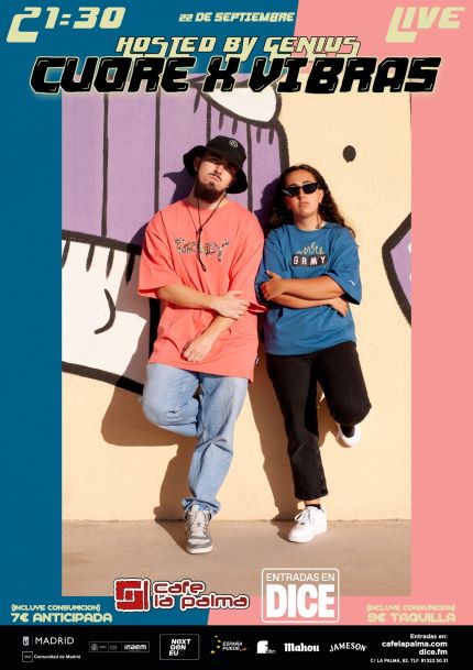 ViBras y Cuore son dos artistas del sur de Madrid que empezaron a crear música a partir de 2019 y 2017 respectivamente. A pesar de ello, sus caminos se encontraron mucho antes, pues no solo hay una relación profesional, sino que les conecta una amistad que se demuestra con la energía que exhiben juntos tanto en sus canciones como en el escenario. Este camino recorrido les lleva a presentar a cada uno su disco: ViBras nos mostrará ‘Desierto’, cuyo estreno está fechado en septiembre de este año, mientras que Cuore celebrará el aniversario de ‘A Donnie Darko Tale’, su álbum debut, que vio la luz en 2021. Todo ello contará con Genius productor y DJ a cargo de la producción de ambos trabajos y los mandos del evento.