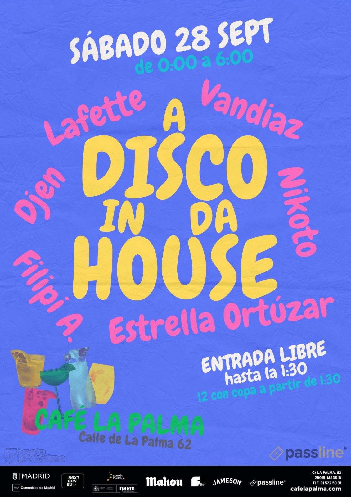 (there is) A DISCO IN DA HOUSE es una nuevo evento que recoge el espíritu de las fiestas en casas donde un grupo de amig@s se juntan y traen a sus colegas para pasar la noche juntos, contarse la semana, escuchar música, conocer gente nueva. A los platos: