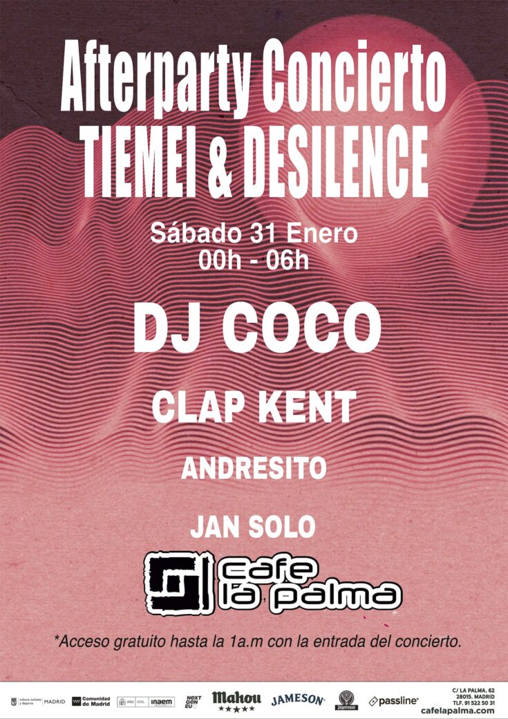 Para celebrar el debut en directo de los barceloneses TIEMEI en Madrid, en un concierto junto al proyecto visual Desilence que tendrá lugar en Condeduque como parte de Inverfest, la fiesta sigue en Café La Palma con una lista de djs que une Madrid y Barcelona a través de la música.