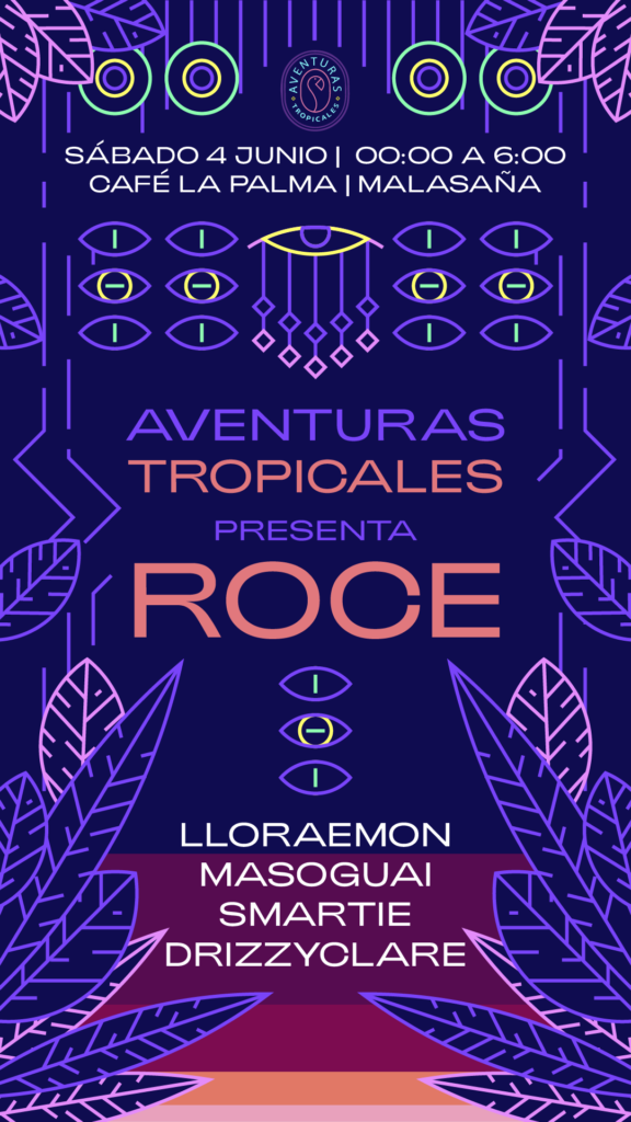 Aventuras Tropicales es sinónimo de bailongo. Fiestas y eventos celebrados en lugares originales en Madrid, a ritmo de cumbia y reguetón junto a otros ritmos latinos que van de la mano a la tendencia global que pretende unir mundos y huir de la costumbre por las sesiones lineales.