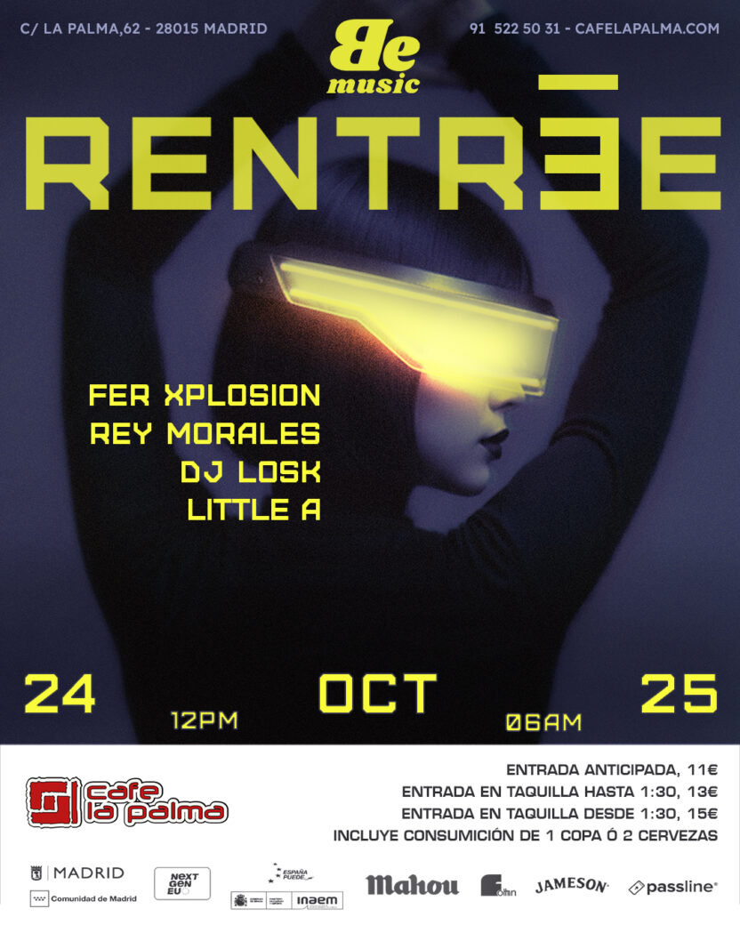 BE MUSIC inicia su tercera temporada en CAFE LA PALMA, y lo hacen acompañados de dos grandes exponentes de la escena underground de la capital, Fer Xplosion, Dj y promotor con varios años de experiencia en la noche madrileña, creador de fiestas de renombre como La Casa del Ácido o Squalo, residente en La Gloria (Club Malasaña) e Intruso Club.