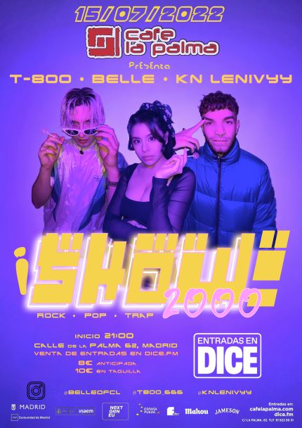 T-800 es un cantante y compositor nacido en Madrid en 1994. Lleva más de cinco años en el mundo de la música y ha dado varios conciertos en ciudades como Madrid, Málaga y Guadalajara. Destacan sus trabajos “Asfixia”, “Vogue”, “Salvatore” y “Apocalips”.