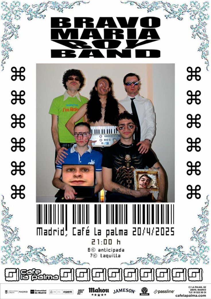 BRAVO MARÍA BIG BOY BAND es muchas cosas, pero se definen como un grupo de artistas de distinto origen. Algunos serán madrileños, otros serán murcianos, pero todos tendrán la misma obsesión con el sonido cuando los veas jugar en el escenario.