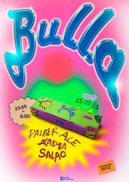 BULLA es una fiesta bimensual de label CAFE LA PALMA que propone una noche de puro baile en la que diferentes Djs de la capital harán disfrutar al público con una propuesta basada generalmente en el disco, funk y house más delicioso, pero abierta a otros géneros.