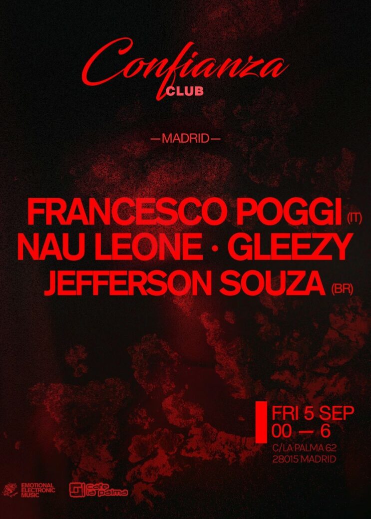 Con un estilo ecléctico que fusiona la electrónica emocional con la potencia del sonido de club, NAU LEONE muestra su faceta más auténtica en Confianza Club. En cada edición, presenta producciones inéditas donde el house, el indie y los matices melódicos se entrelazan sin perder fuerza ni groove. Su propuesta lo ha llevado a presentarse en algunos de los clubes más prestigiosos del mundo, en ciudades como Nueva York, Roma, Vancouver, Madrid y Londres. Su música ha sido respaldada por artistas como Eli & Fur o George Fitzgerald, y reconocida por medios de renombre como BBC Radio 1, NPR y Cercle.
