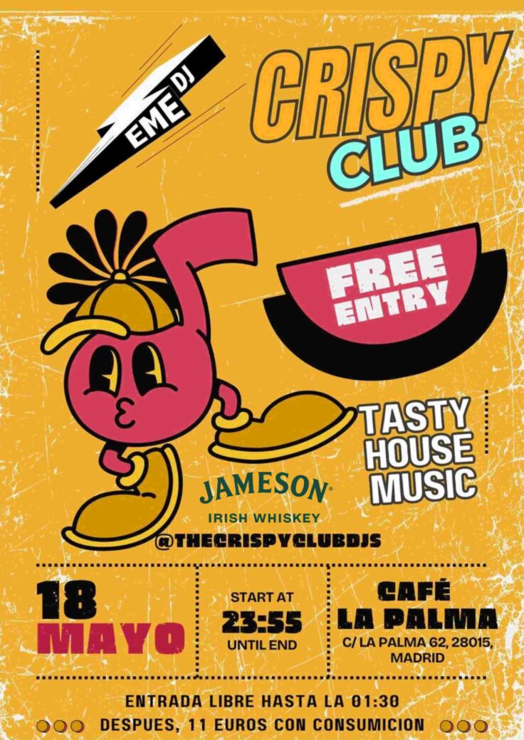 CRISPY CLUB son NATIKA y DAREKU, dos Djs que, tras años de pinchar en las mismas fiestas y remezclarse el uno al otro, han decidido unir sus fuerzas para cocinar un nuevo concepto de fiesta donde se fusiona una cuidada selección musical y técnica con una performance de los más jugosa.
