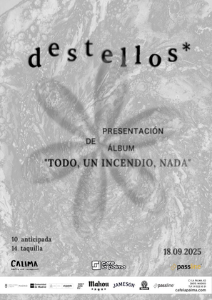 destellos* es un grupo de música nacido en Madrid en algún punto no muy concreto de 2022 conformado por Celia al bajo, Pedro y Francho a las guitarras, Jesús a las baterías y Almu a la voz. Música nacida de la frustración y el estrés de una generación sobre- estimulada; dudas y planteamientos que se generan en las etapas de madurez y acercamiento a la vida adulta.