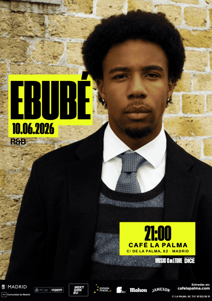 El secreto mejor guardado del R&B contemporáneo aterriza en Madrid. Ebubé, cantante y multi-instrumentista londinense, elige el escenario de Café La Palma como una parada estratégica de su primer tour en solitario, consolidándose como una de las voces más magnéticas y sofisticadas de la escena actual.