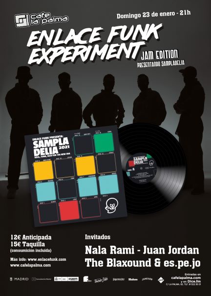 La primera Enlace Funk Experiment Jam Edition de 2022 nos trae una sesión muy especial, presentando el disco «Sampladelia 2021» en la que nos visitan como invitados especiales algunos de los artistas que han participado en esta recopilación, con el grupo Enlace Funk Experiment como banda residente.