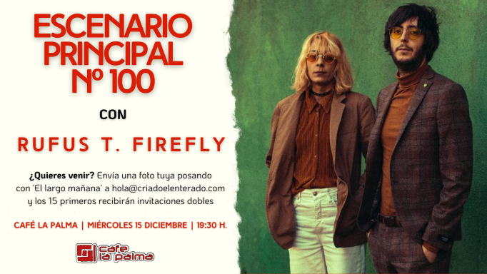 Rufus T. Firefly acudirán a CAFE LA PALMA (pendiente confirmar si irá sólo Victor Cabezuelo, compositor principal, o con más integrantes) para participar en la grabación del programa 100 de Escenario Principal.