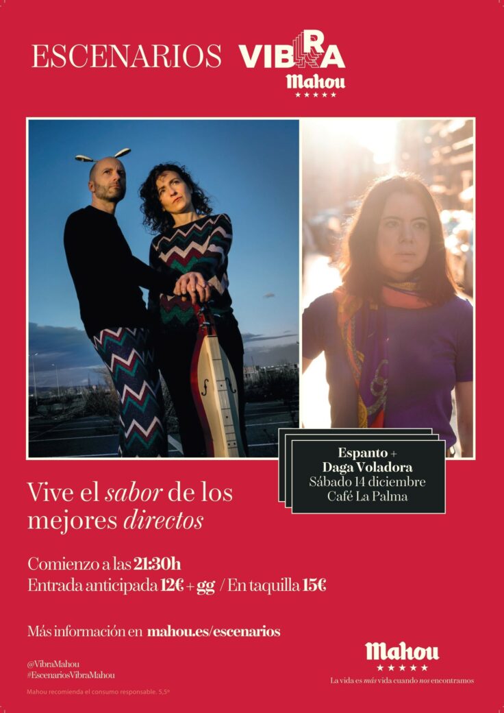 Teresa y Luis, ESPANTO, son un dúo y componen canciones. En esta ocasión presentarán en directo su nuevo disco “Rumores” en formato electrónico. Con un planteamiento que se podría calificar como dream rock, además, repasarán sus canciones más celebradas de discos anteriores, en lo que promete ser uno encuentro místico-festivo con su público, al que adoran.