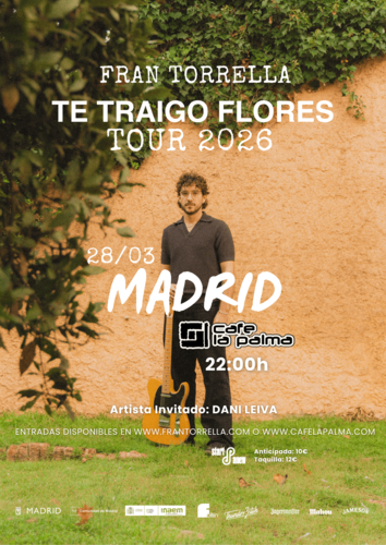 Fran Torrella es un cantante y compositor barcelonés que se está consolidando como solista emergente como una de las voces más sensibles y prometedoras del nuevo pop alternativo español. Con un universo sonoro que combina emoción, vulnerabilidad y una marcada personalidad artística, Torrella se mueve entre el pop de autor, el indie y el rock con una producción fresca y moderna que busca siempre la conexión humana. Tras la publicación de su primer disco, Sinergias, y varias canciones que han despertado la atención del público, como Fácil o Te traigo flores, el artista sigue construyendo una trayectoria sólida y honesta, marcada por una búsqueda constante de nuevos sonidos y sitios dónde ir a dar show. Su directo se caracteriza por la cercanía, la intensidad y la calidez: un espacio donde cada canción se transforma en experiencia compartida. Con una puesta en escena cuidada y una interpretación profundamente emocional, Fran Torrella consigue que el público se reconozca en sus letras y se deje llevar por su energía. El próximo 28 de marzo, presentará en Café La Palma (Madrid) las canciones que formarán parte de su segundo trabajo discográfico, en un concierto que promete ser un viaje íntimo y luminoso a través de sus nuevas composiciones y de los temas que ya lo acompañan desde el primer disco.