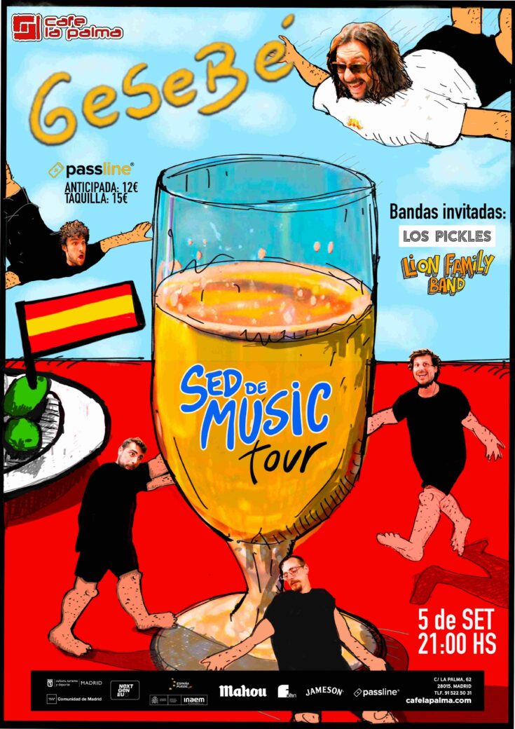 GeSeBé viene desde Barcelona con su talentosa banda para presentar su reciente y flamante álbum «Sed de music». Estarán presentándose por primera vez en Madrid, en una velada especial donde compartirá escenario con Los Pickles y The Lion Family para hacer una noche a pura fiesta, con mucho reggae y cumbia.