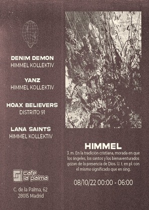 HIMMEL KOLLEKTIV se presenta en CAFE LA PALMA con los beats atronadores de Denim Denom, Yanz, Hoax Believers y Lana Saints.