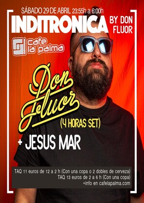 DON FLUOR –alter ego musical de Rafa Lopez– es un Dj y productor albaceteño afincado en #Murcia que redefine el concepto #FIESTA proponiendo un discurso divertido desde el #house pero llevando sus shows por #indie, #indietrónica y #techno. Además, forma parte del staff de programación de CAFE LA PALMA desde este verano de 2019, año en el que comenzó a comenzó a tener residencia fija en nuestras sesiones.