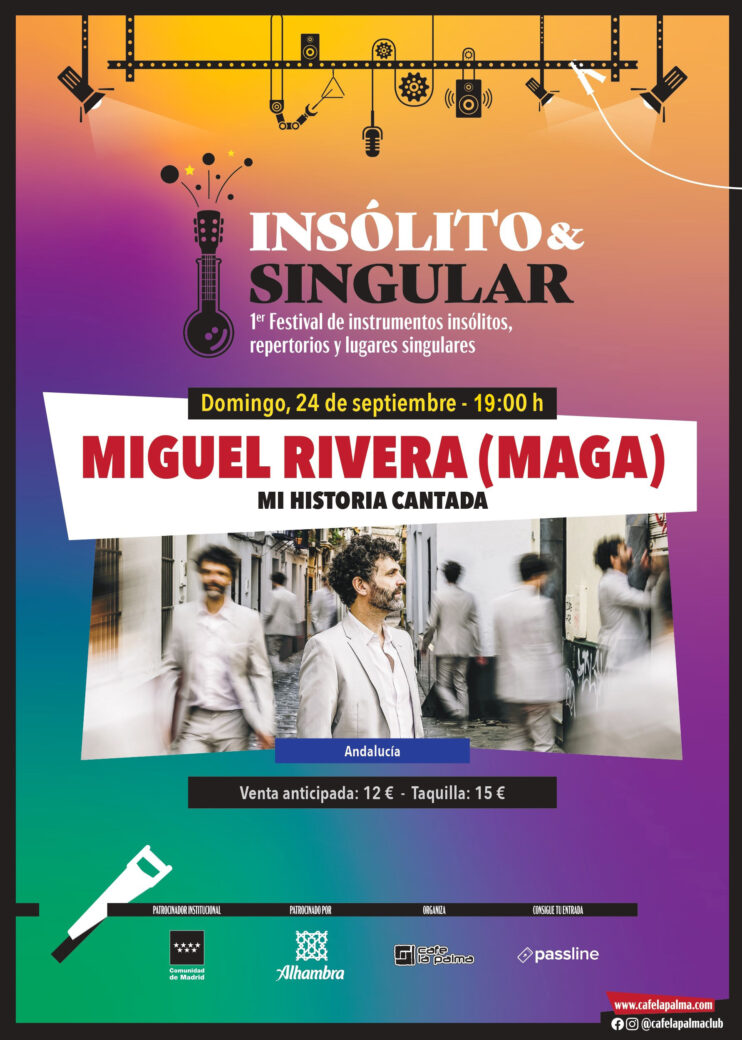 Como principal compositor de la banda, MIGUEL RIVERA sentía que debía mostrar de una manera más profusa las entrañas de ese repertorio. Así que decidió enrolarse por su cuenta en una gira en la que contar y cantar la historia que hay detrás de cada una de las canciones más representativas de MAGA. Esta gira, bautizada como MI HISTORIA CANTADA, supone el cierre de una etapa para dar paso al comienzo de otra.