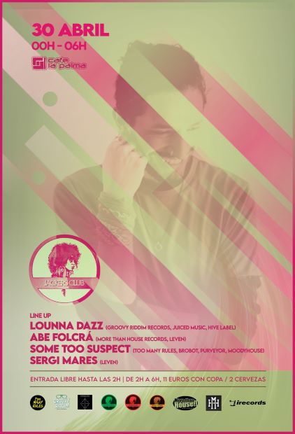 Para esta sesión, contaremos con Lounna Dazz y Sergi Mares, además de Abe Folcrá, viejo conocido de Leven Club, y con Some Too Suspect, creador de Jackers y de So Funk Agency, con referencias en sellos como Too Many Rules, I! Records, Brobot Records o MoodyHouse Recordings, entre muchos otros.