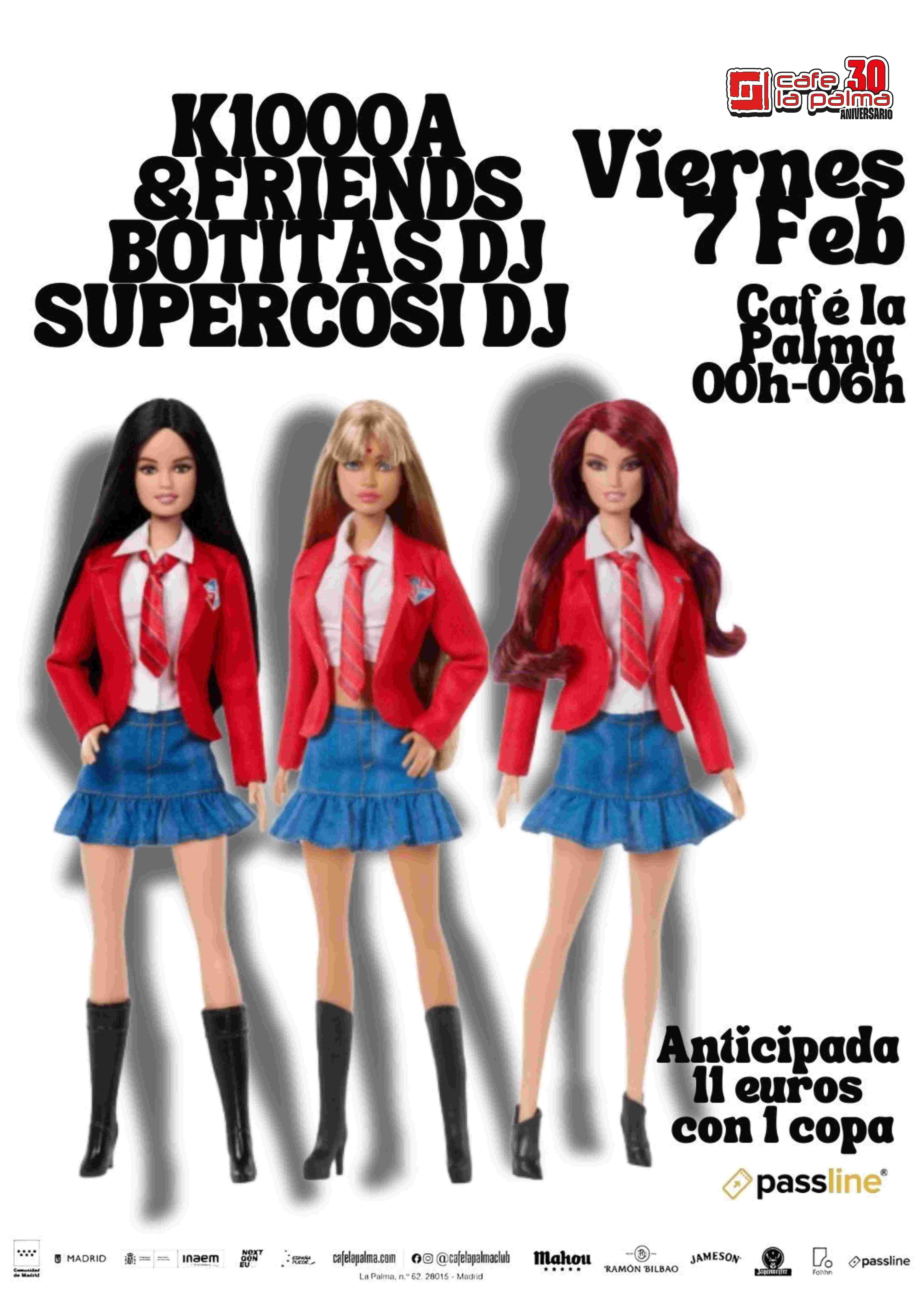 K1000A, secundada por sus escuderas Botitas Dj y Supercosi hostea unas fiestas con una exquisita selección musical para venir a bailar y disfrutar de hits de ayer y de hoy.
