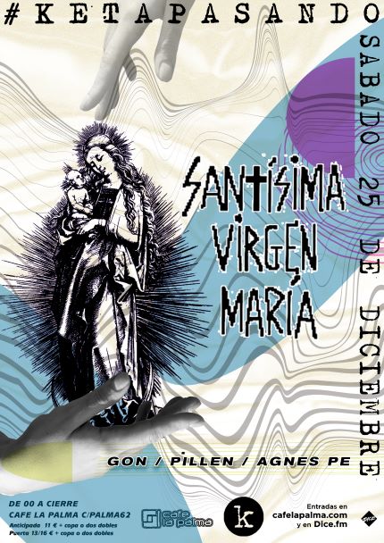 El día de Navidad, Santisima Virgen Maria llegará en burro desde su portal para deleitarnos con su licuadora sonora. Para adorar tal magna aparición, vienen junto a sus kamellxs, tres pajes reales: Gon, Pillen Y Agnès Pe, quienes traerán deliciosas ofrendas sonoras que están deseando de repartir entre los asistentes.