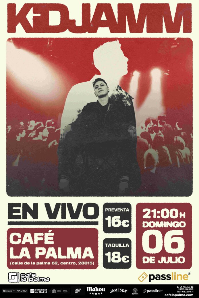 Presentando por primera vez un show adaptado totalmente al formato en vivo con su banda integrada por excelentes músicos –y amigos– venezolanos, KIDJAMM se presenta en el escenario de CAFE LA PALMA una experiencia atípica y explosiva en relación a lo que la escena urbana propone hoy en día. Habrá sorpresas, artistas invitados y desde luego una conexión genuina entre la banda y el espectador.