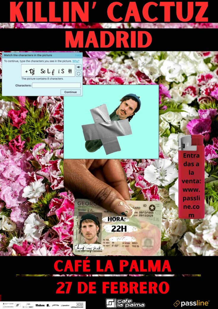 KILLIN’ CACTUZ es un dúo barcelonés que navega entre la música y la performance compuesto por Adrià González y Nao Albet (actor catalán de series como “Cuéntame cómo pasó”). Tienen un sonido bastante único y rebosan talento. Ellos mismos escriben, producen e interpretan todo su material. Con un brillante mestizaje de hip hop, música experimental, electrónica, indie, rap alternativo o bedroom pop, nos recuerdan a grupos como Gorillaz, Tyler, the Creator o James Blake.