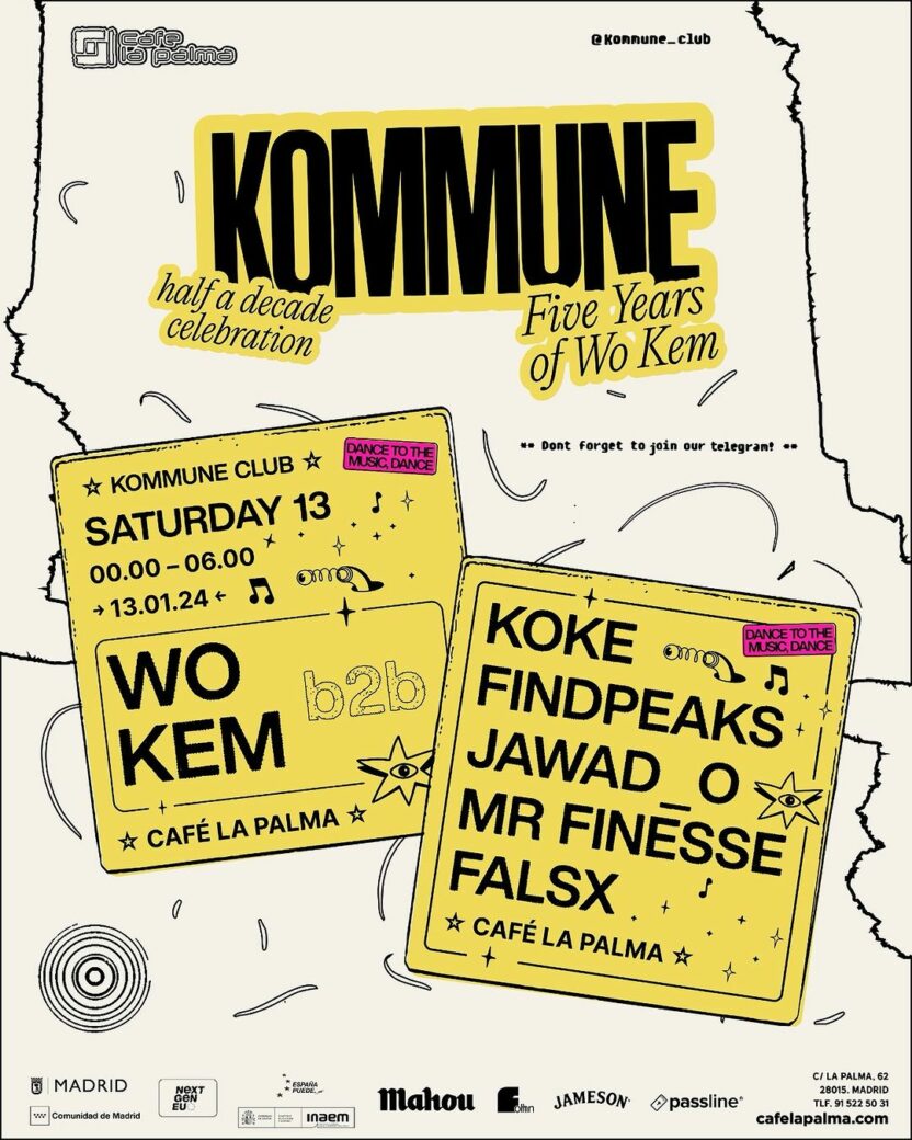 KOMMUNE KLUB se estrena por primera vez en CAFE LA PALMA con una celebración por todo lo alto: uno de sus fundadores, WO KEM, cumple un lustro desde que pinchó por primera vez en un club en Madrid. Cinco años de magia, música y bailes.