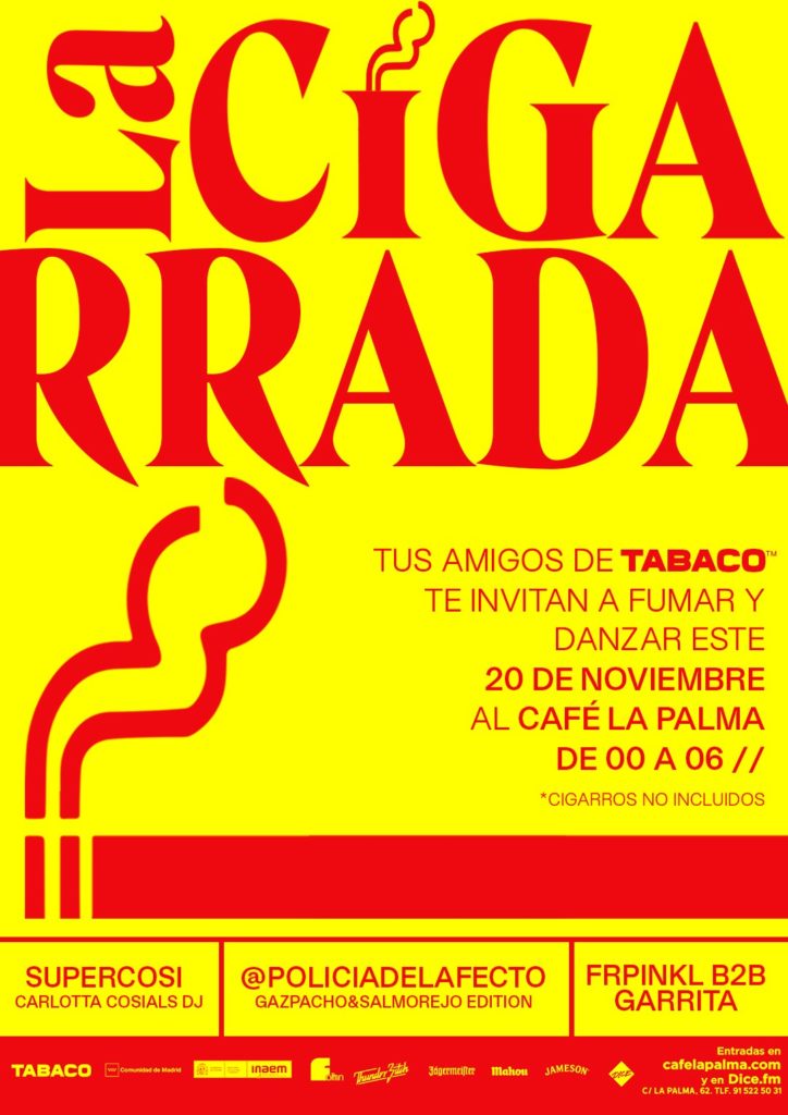 ¿Cuántas veces te has levantado diciendo: Dios, ¡qué ganas de fumarme doscientos cigarros! En TABACO te comprendemos y por eso volvemos a celebrar la Comunión de la Colilla, una noche dedicada única y exclusivamente a recaudar fondos para la AAFMT, la Asociación de Amigos de Fumar Más Tabaco. Ven a bailar con nosotros y sobre todo sal fuera del garito a fumar cada vez que te notes un poco alicaído. Las cerillas corren de nuestra cuenta.