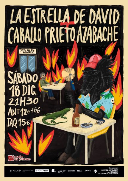 Caballo Prieto Azabache son Victoria, Guille, Luis, Javi y Quique. Grupo habitual en la escena underground madrileña, Caballo Prieto Azabache debutó a finales de 2019 con el EP «Madrid, Agosto 40º», cuatro cortes grabados en el Observatorio Musical y producidos adivinen por quién. Sí, por David Rodríguez. De La Estrella de David.