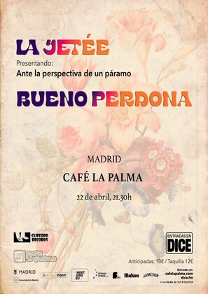 Bueno Perdona es una banda de noise pop formada por los sureños Teresa, Juanma, Joaquim, David y Fernando. En la noche del 22 de abril, presentan su primer EP “Pocas Cosas En Mucho Tiempo”, donde letras irreverentes sobre temas cotidianos contrastan con atmósferas profundas de shoegaze y que dan como resultado canciones divertidas y descaradas.